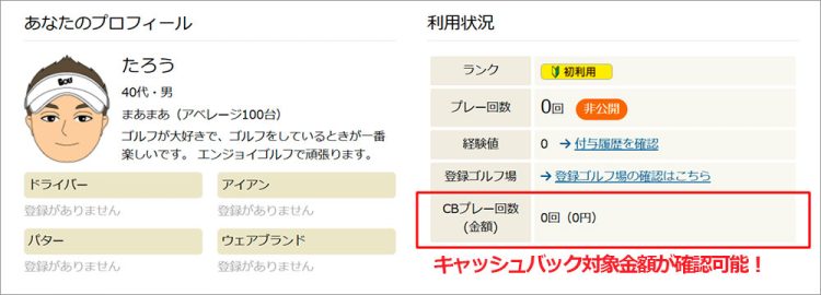 すでにマイページ上で「キャッシュバック プレー回数/金額」が